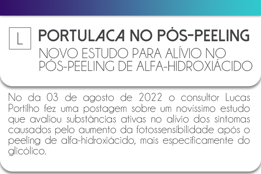 Esse estudo mostrou que a exposição combinada do ácido glicólico e UV rompeu a barreira da pele e induziu inflamação significativa, fornecendo uma base teórica para o aumento da fotossensibilidade após o peeling químico. Concluiu ainda que o extrato de Portulaca oleracea é capaz de melhorar a função de barreira e a inflamação podendo ter o potencial de aliviar a fotossensibilidade após o peeling de AHA.